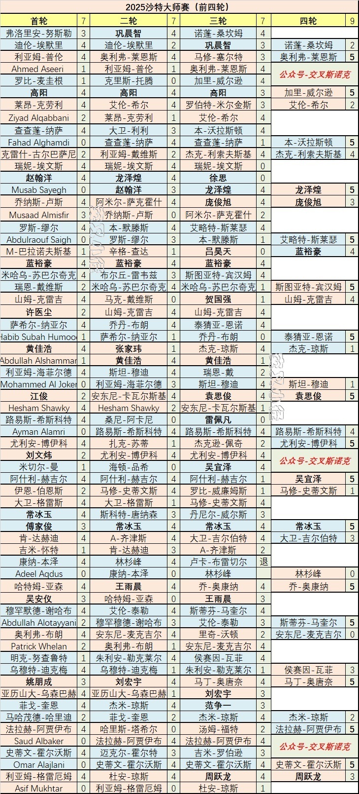 进入第四轮的中国球员,共有7位,除了一场德比战,外战3胜2负,共4人晋级。