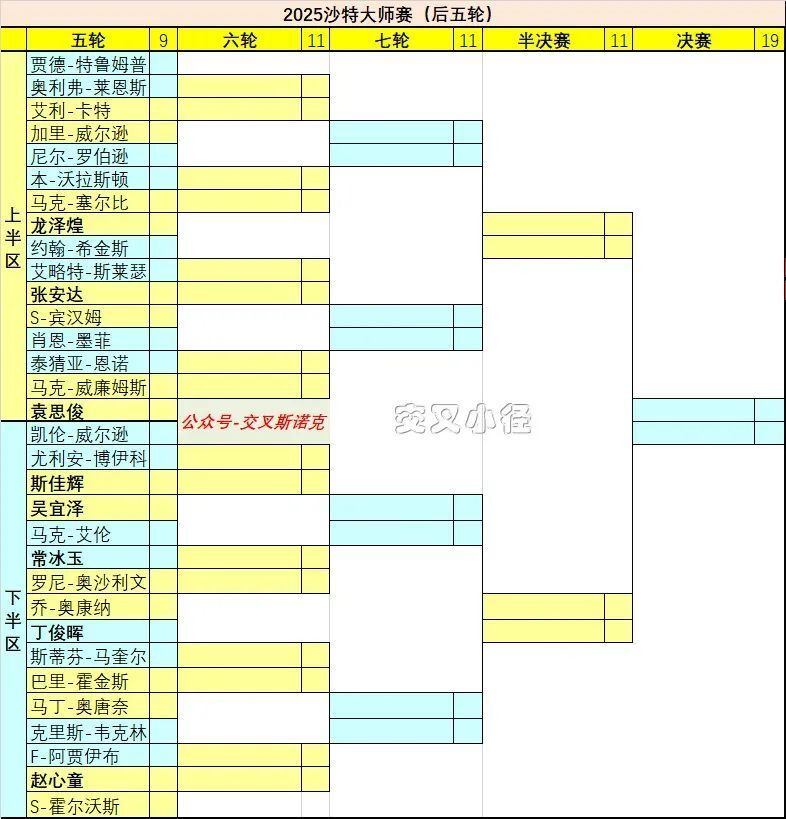 关于第五轮的赛程和签表简析,后续推送。先简单预告下,丁俊晖、赵心童和斯佳辉的比赛,都安排在今晚第二个时段,也就是午夜零点30分。